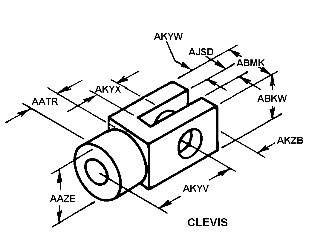 5340-01-197-1448 A forked part, having transverse hole(s) or slot(s) in each arm (prong) to accommodate a bolt, pin, or the like, and having a connection facility opposite the fork. It is designed to be attached to a shaft, rod, turnbuckle or the like by welding, threading, and/or pinning. May include provisions for locking. See also YOKE, UNIVERSAL JOINT and CONNECTOR, ROD END. For items specifically designed for aviation, see CLEVIS, ROD END, AVIATION.20210050018Guns, through 30mm53400020Hardware, Commercial