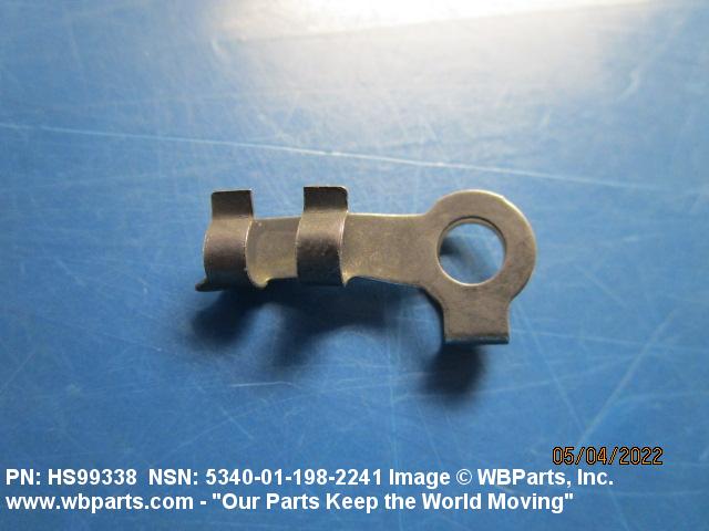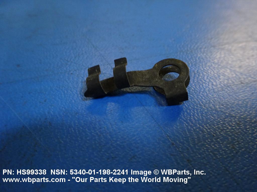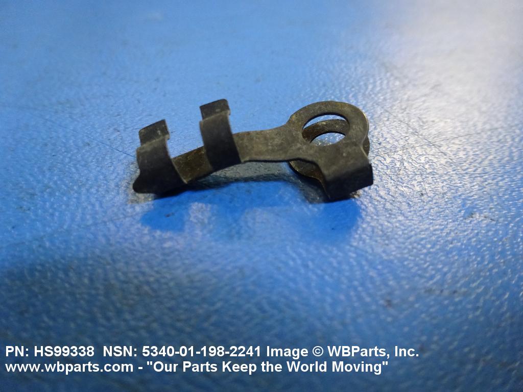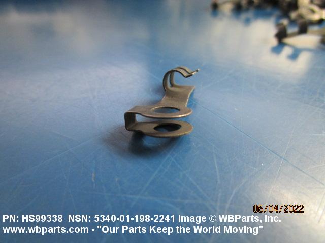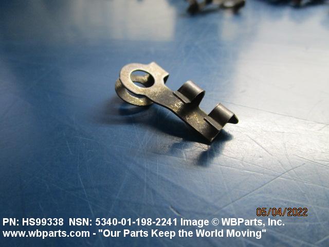 5340-01-198-2241 An item formed or molded from resilient material, open along the entire length of the body and having in one end a clevis w/transverse holes, or a split tubular type clip through which a part, pin or a like is being held in place by spring tension.