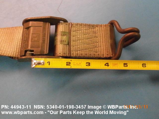 5340-01-198-3457 A narrow strip of webbing cut to a definite length, having one or both ends processed. It is usually designed for, and may have, one or more attachments or fasteners, such as BUCKLE; LOOP, STRAP FASTENER; strap end clip; RING, DEE; Hook; and the like. Excludes STRAP, BERTH, MATTRESS RETAINING; STRAP, CHIN; safety straps; and WEBBING, TEXTILE. Do not use if a more specific item name applies.20416800049Miscellaneous Aircraft Accessories and Components53400020Hardware, Commercial84650020Individual Equipment84700015Armor, Personal