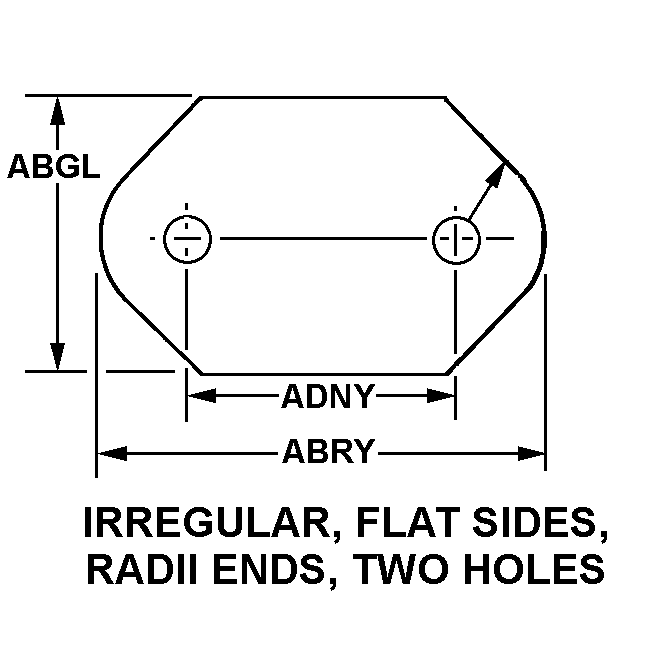 | PERIPHERAL SHAPE STYLE | 85 IRREGULAR, FLAT SIDES, RADII ENDS, TWO HOLES |