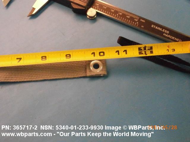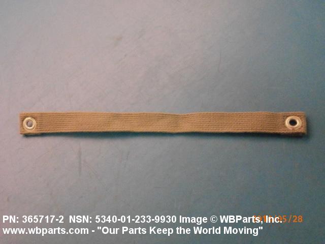 5340-01-233-9930 A narrow strip of webbing cut to a definite length, having one or both ends processed. It is usually designed for, and may have, one or more attachments or fasteners, such as BUCKLE; LOOP, STRAP FASTENER; strap end clip; RING, DEE; Hook; and the like. Excludes STRAP, BERTH, MATTRESS RETAINING; STRAP, CHIN; safety straps; and WEBBING, TEXTILE. Do not use if a more specific item name applies.20416800049Miscellaneous Aircraft Accessories and Components53400020Hardware, Commercial84650020Individual Equipment84700015Armor, Personal