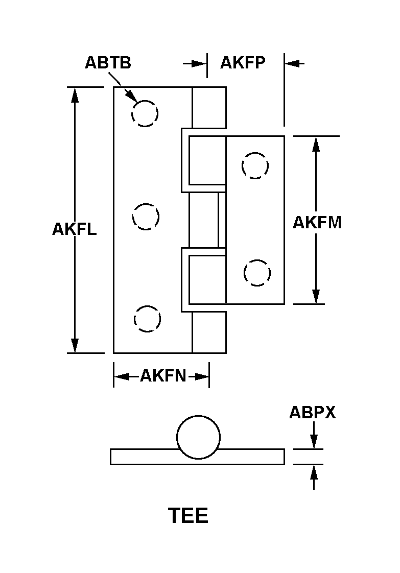 5340-01-242-7144 A hinge whose general shape is like the letter T, with one leaf resembling that of a butt hinge, and the other that of a strap hinge. The hinge may also have both leaves resembling strap hinges or butt hinges of different widths.