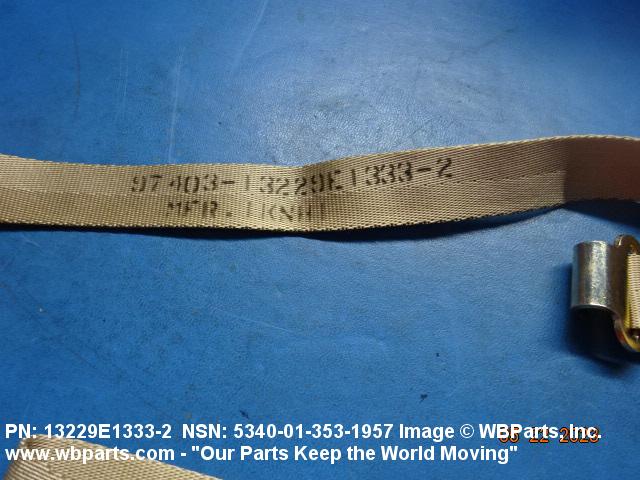 5340-01-353-1957 A narrow strip of webbing cut to a definite length, having one or both ends processed. It is usually designed for, and may have, one or more attachments or fasteners, such as BUCKLE; LOOP, STRAP FASTENER; strap end clip; RING, DEE; Hook; and the like. Excludes STRAP, BERTH, MATTRESS RETAINING; STRAP, CHIN; safety straps; and WEBBING, TEXTILE. Do not use if a more specific item name applies.20416800049Miscellaneous Aircraft Accessories and Components53400020Hardware, Commercial84650020Individual Equipment84700015Armor, Personal