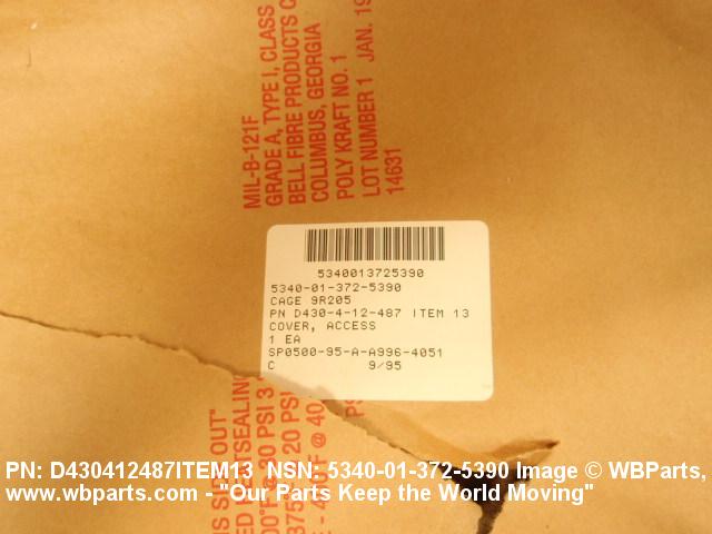 NSN 5340-01-372-5390 D430-4-12-487 ITEM 13, D430412487ITEM13, 169259180430000
