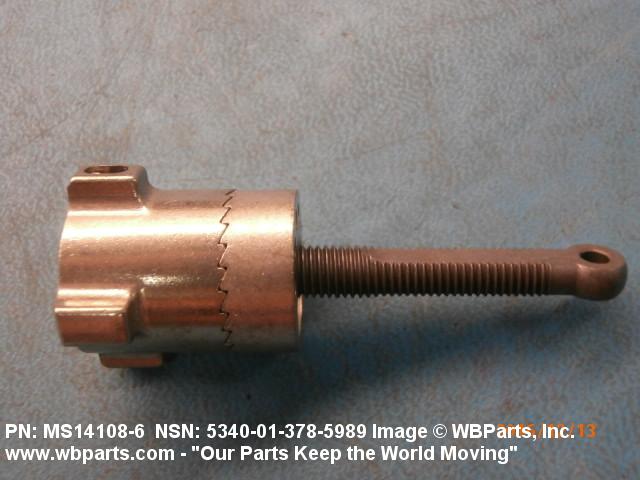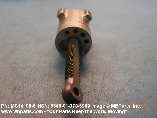 5340-01-378-5989 A threaded item having an eye on one end designed to accommodate a hinge pin, or a pin inserted at right angles to the shank. It must have an adjusting nut assembled on the threads. The end of the threads may be headed, or a cap nut or similar device attached to prevent disassembly of the adjusting nut. It may also have a washer, collar or retainer assembled between the nut and hinge mounted end. Includes items having a bracket or lug mounting. It is used to rigidly clamp items to a structure, instrument, or the like.