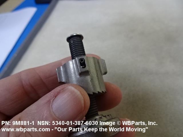 5340-01-387-6030 A threaded item having an eye on one end designed to accommodate a hinge pin, or a pin inserted at right angles to the shank. It must have an adjusting nut assembled on the threads. The end of the threads may be headed, or a cap nut or similar device attached to prevent disassembly of the adjusting nut. It may also have a washer, collar or retainer assembled between the nut and hinge mounted end. Includes items having a bracket or lug mounting. It is used to rigidly clamp items to a structure, instrument, or the like.
