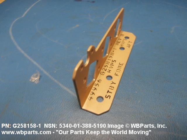 5340-01-388-5190 A ridge item, usually of flat material, formed into a dihedral angle (generally a right angle) which may be reinforced; it is designed to position, align, or support an item(s) in relation to another. Excludes BRACE (as modified); BRACKET (1), MOUNTING; and BRACKET, SHELF.202534000005342000000