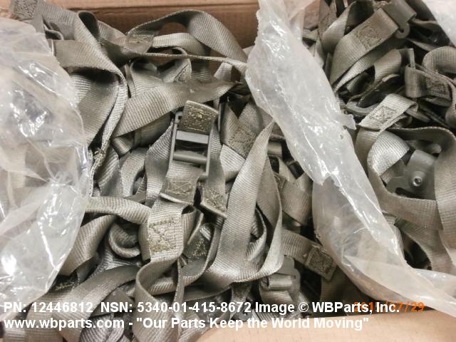 5340-01-407-3496 A narrow strip of webbing cut to a definite length, having one or both ends processed. It is usually designed for, and may have, one or more attachments or fasteners, such as BUCKLE; LOOP, STRAP FASTENER; strap end clip; RING, DEE; Hook; and the like. Excludes STRAP, BERTH, MATTRESS RETAINING; STRAP, CHIN; safety straps; and WEBBING, TEXTILE. Do not use if a more specific item name applies.20416800049Miscellaneous Aircraft Accessories and Components53400020Hardware, Commercial84650020Individual Equipment84700015Armor, Personal