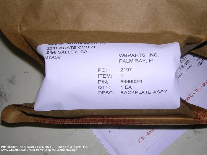 Part Alternates: 6986021, 698602-1, 5340-01-425-3941, 01-425-3941, 5340014253941, 014253941