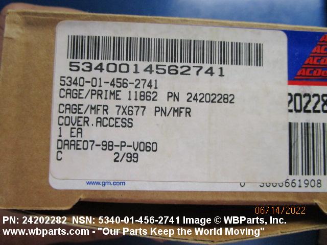 Part Alternates: 24202282, 5340-01-456-2741, 01-456-2741, 5340014562741, 014562741