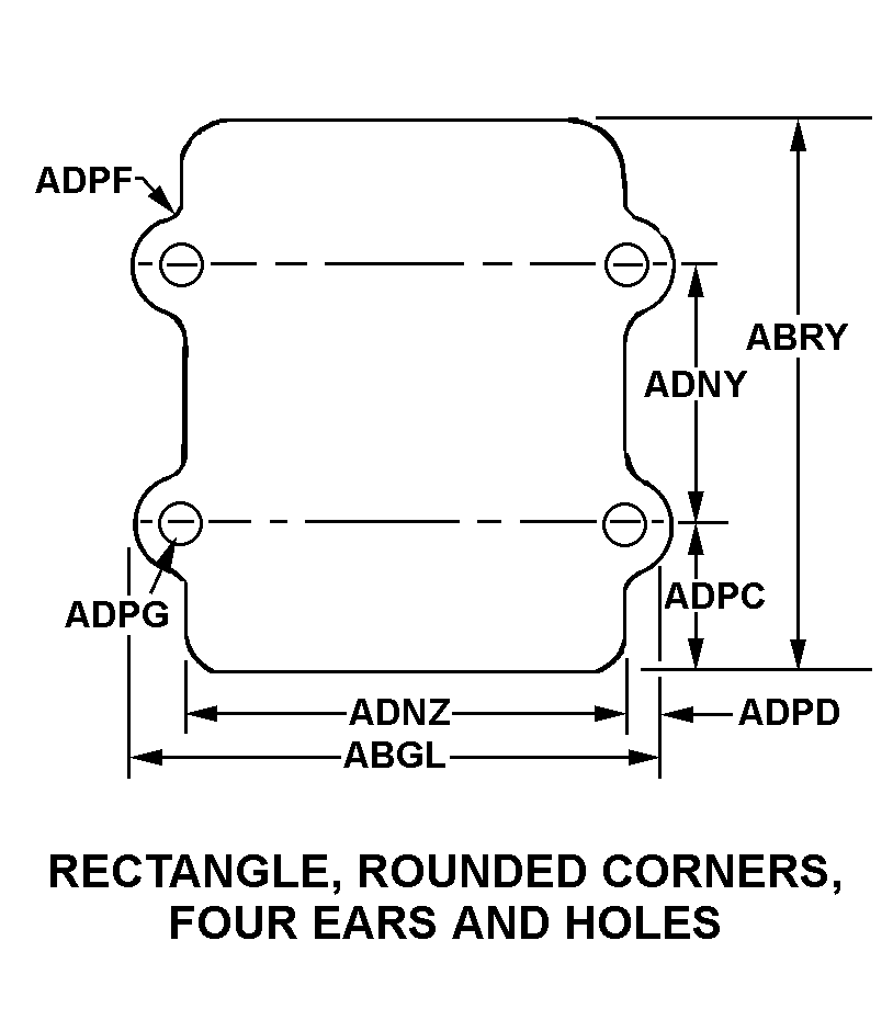 | PERIPHERAL SHAPE STYLE | 54 RECTANGLE, ROUNDED CORNERS, FOUR EARS AND HOLES |