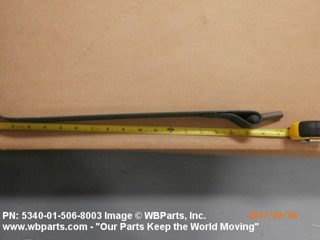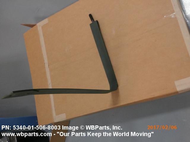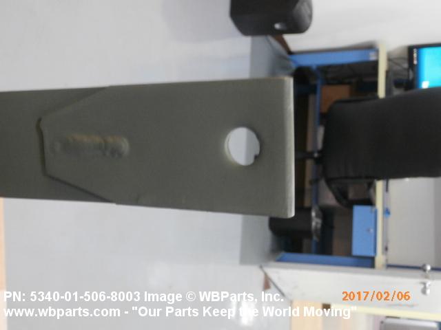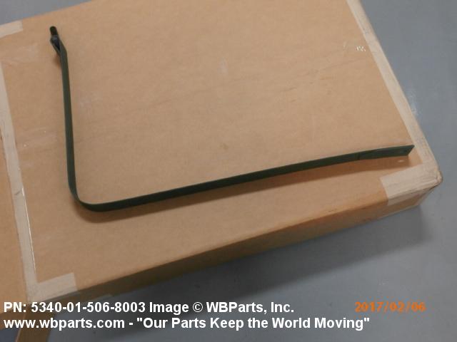 5340-01-506-8003 A flexible or semiflexible metal strip designed to partially surround and retain an item against a structure, frame, bracket, or the like. Includes a single segment of a sectioned type CLAMP, LOOP or CLAMP, HOSE. Both ends may have, but one end must have, a loop to accommodate a hinge pin, or a stud welded to the end of the band. May be furnished with a trunnion, T-bolt, pin, latch, or the like. For items designed to completely surround an object(s), see CLAMP, LOOP. See also COVER, ACCESS and STRAP, RETAINING.