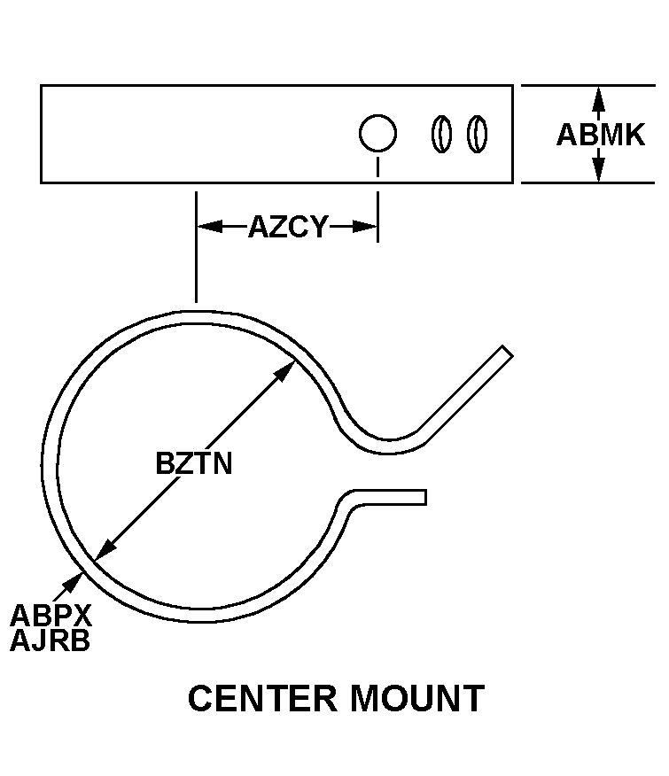 | CENTER TO CENTER DISTANCE BETWEEN LOOP AND MOUNTING HOLE | 8.000 INCHES NOMINAL |