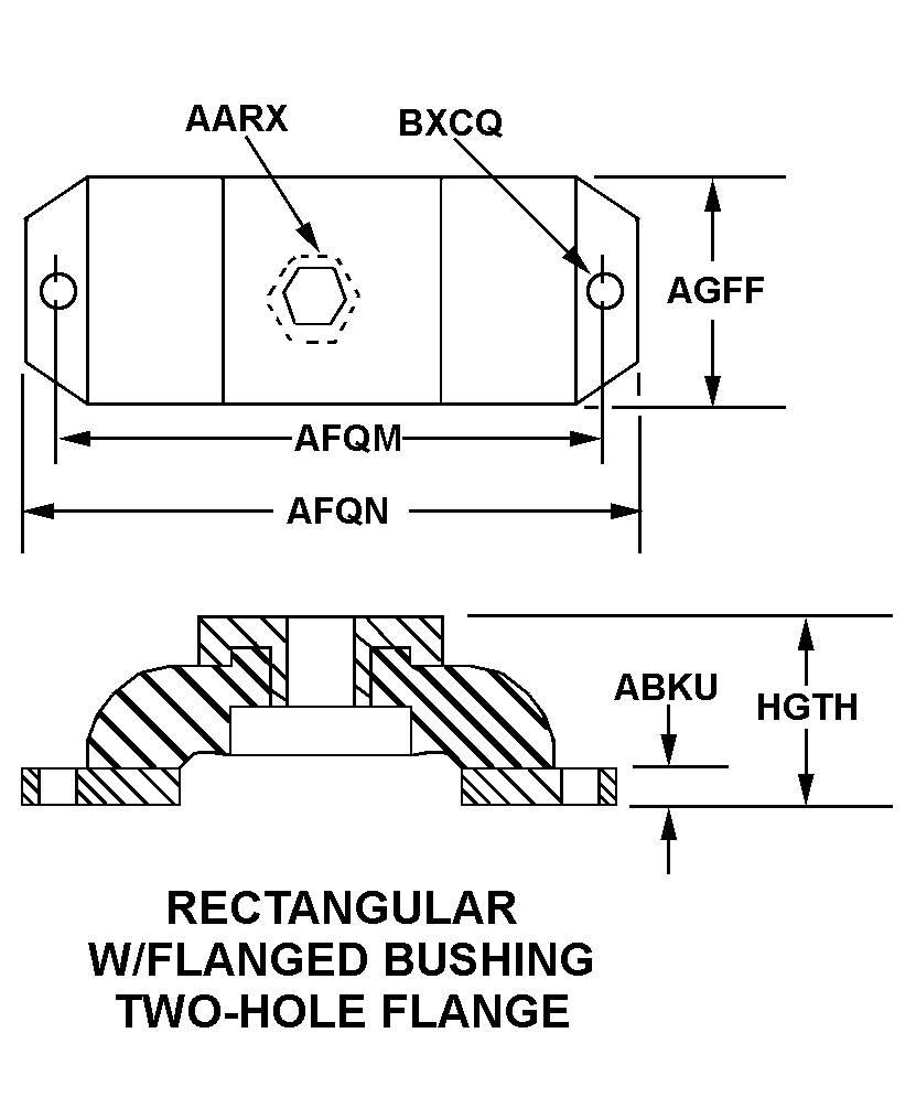 | STYLE DESIGNATOR | 23 RECTANGULAR W/FLANGED BUSHING TWO-HOLE FLANGE |