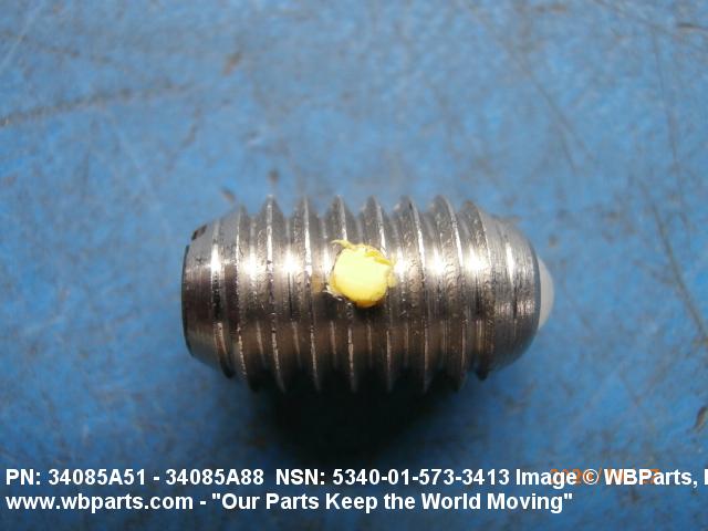 5340-01-573-3413 An externally threaded tubular item containing a spring loaded device (pin, ball, etc.). The device is held in the thrown position by the spring and recedes when pressure is exerted against it. It is used as a locator, detent, and the like.