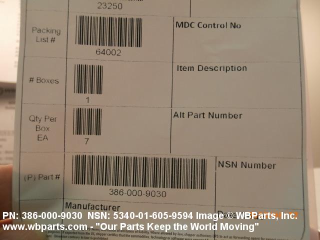 NSN 5340-01-605-9594 03-2814303, 3860009030, 386-000-9030