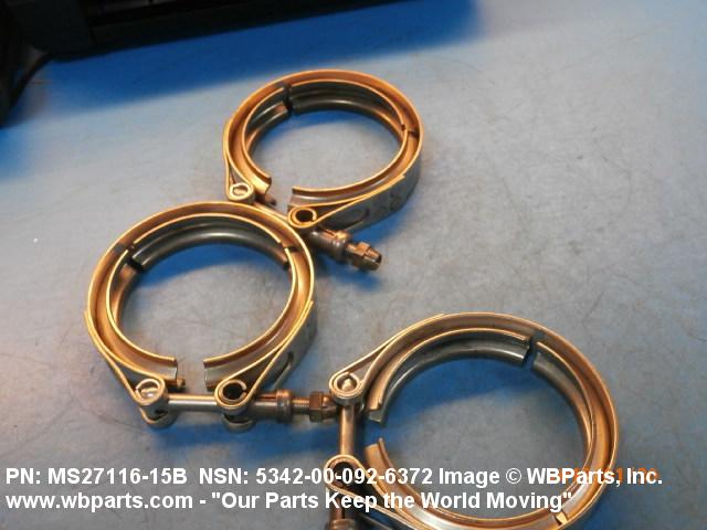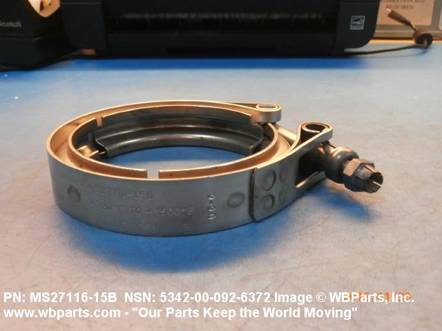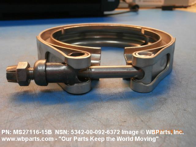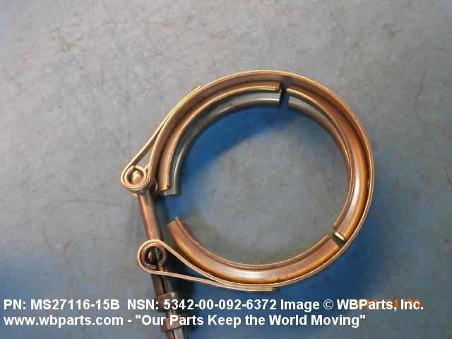 5342-00-092-6372 A metal loop having either a V or U cross section or channelled segment(s). It may be attached to a flat band. It is designed to create a fluid tight joint and/or connect pipe, tubing, tank cover(s), duct(s) and the like, by mating with flanged or beaded ferrule(s), flared, or beaded ends. It may or may not have a sealing inner liner. A latch or latches of the quick coupling type, nut or bolt type, or threaded trunnion type is (are) used to lock and adjust the band. Excludes COUPLING, CLAMP, PIPE and RING, LOCKING, METAL DRUM COVER.