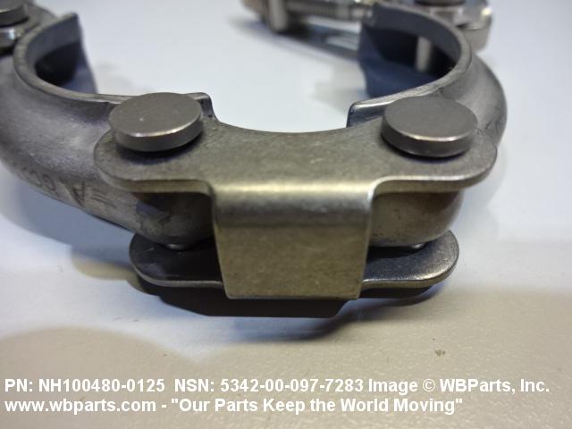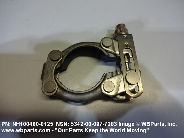 5342-00-097-7283 A metal loop having either a V or U cross section or channelled segment(s). It may be attached to a flat band. It is designed to create a fluid tight joint and/or connect pipe, tubing, tank cover(s), duct(s) and the like, by mating with flanged or beaded ferrule(s), flared, or beaded ends. It may or may not have a sealing inner liner. A latch or latches of the quick coupling type, nut or bolt type, or threaded trunnion type is (are) used to lock and adjust the band. Excludes COUPLING, CLAMP, PIPE and RING, LOCKING, METAL DRUM COVER.