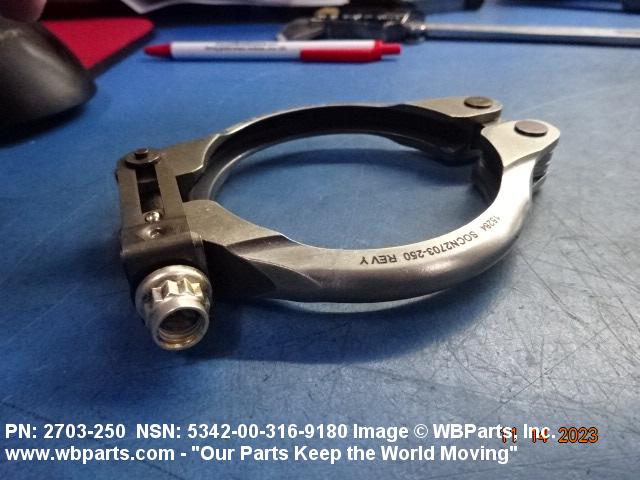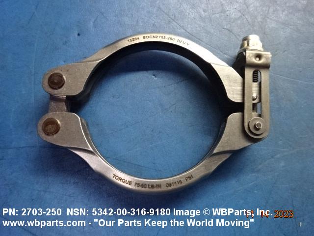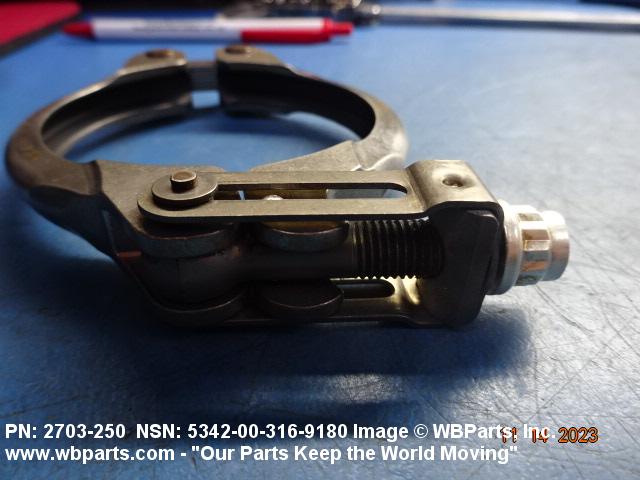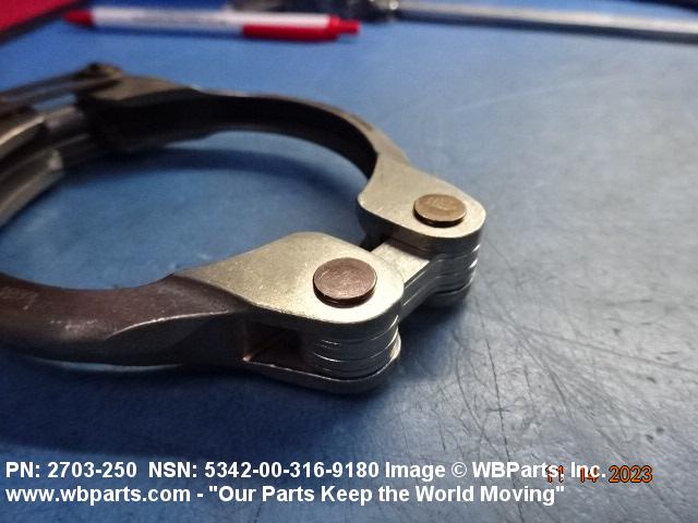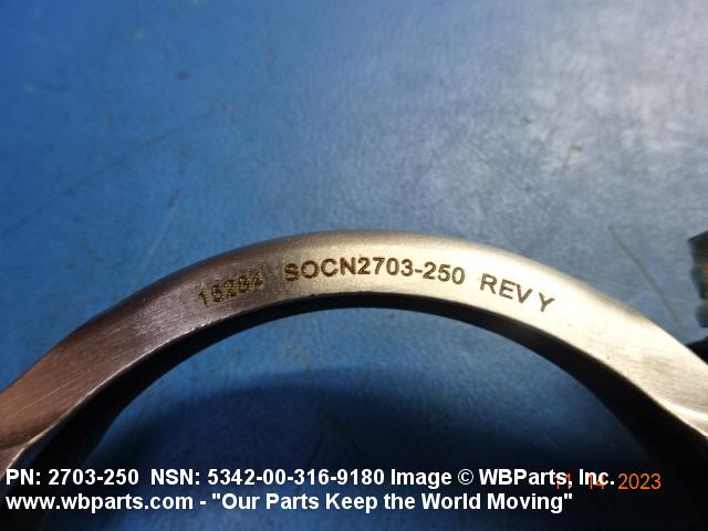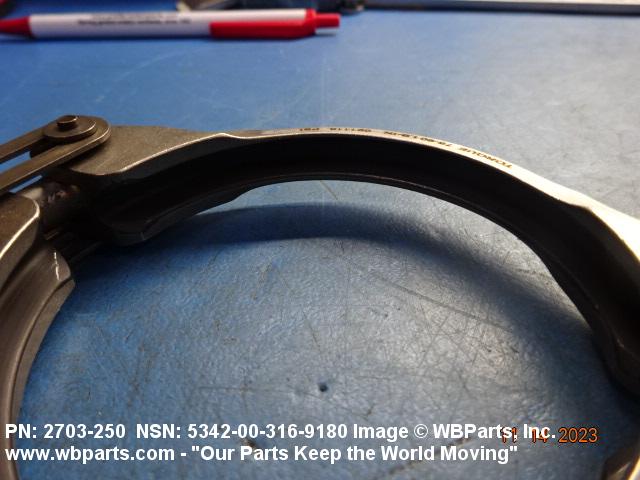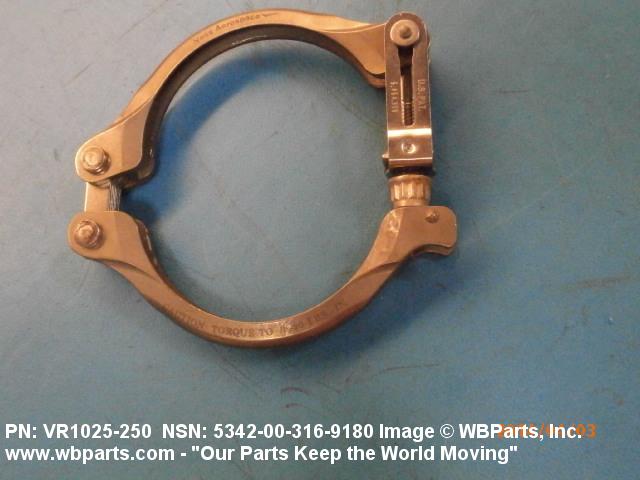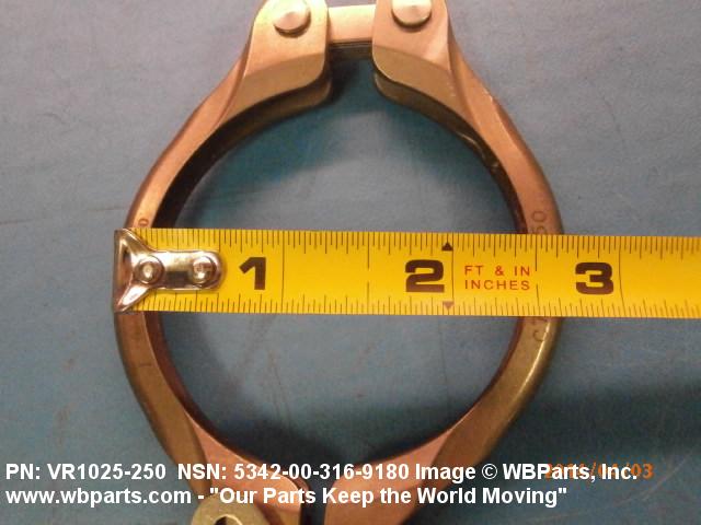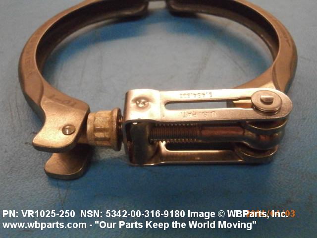 5342-00-316-9180 A metal loop having either a V or U cross section or channelled segment(s). It may be attached to a flat band. It is designed to create a fluid tight joint and/or connect pipe, tubing, tank cover(s), duct(s) and the like, by mating with flanged or beaded ferrule(s), flared, or beaded ends. It may or may not have a sealing inner liner. A latch or latches of the quick coupling type, nut or bolt type, or threaded trunnion type is (are) used to lock and adjust the band. Excludes COUPLING, CLAMP, PIPE and RING, LOCKING, METAL DRUM COVER.