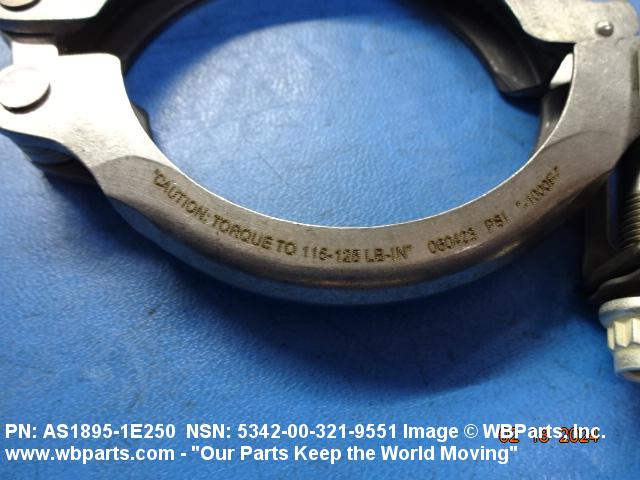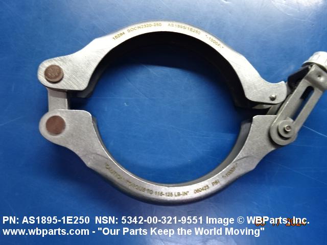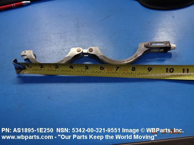 5342-00-321-9551 A metal loop having either a V or U cross section or channelled segment(s). It may be attached to a flat band. It is designed to create a fluid tight joint and/or connect pipe, tubing, tank cover(s), duct(s) and the like, by mating with flanged or beaded ferrule(s), flared, or beaded ends. It may or may not have a sealing inner liner. A latch or latches of the quick coupling type, nut or bolt type, or threaded trunnion type is (are) used to lock and adjust the band. Excludes COUPLING, CLAMP, PIPE and RING, LOCKING, METAL DRUM COVER.