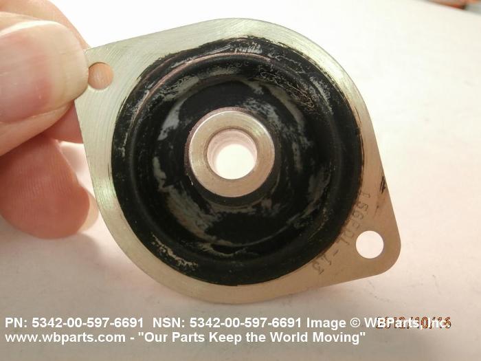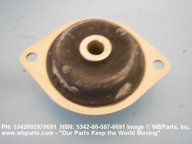 5342-00-597-6691 An item made of material having elastic properties. It may have rigid mounting facilities such as a flange(s), sleeve(s), stud(s) or the like. It is designed to isolate or dampen shock and/or vibration of a continuous or intermittent origin and serve as a support for a weapon system component to be isolated. Excludes MOUNT, RESILIENT, UTILITY; SPRING (as modified); BUMPER, NONMETALLIC; BUMPER, RUBBER; BUSHING, NONMETALLIC; hydraulic and pneumatic shock absorbers, dash-pots, grommets, and shock pads.