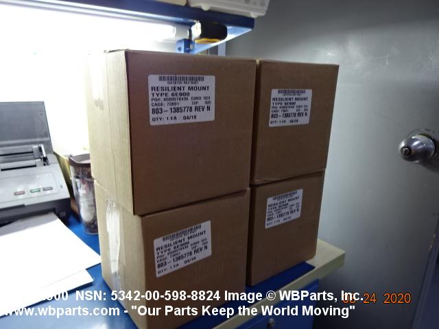 5342-00-598-8824 An item made of material having elastic properties. It may have rigid mounting facilities such as a flange(s), sleeve(s), stud(s) or the like. It is designed to isolate or dampen shock and/or vibration of a continuous or intermittent origin and serve as a support for a weapon system component to be isolated. Excludes MOUNT, RESILIENT, UTILITY; SPRING (as modified); BUMPER, NONMETALLIC; BUMPER, RUBBER; BUSHING, NONMETALLIC; hydraulic and pneumatic shock absorbers, dash-pots, grommets, and shock pads.