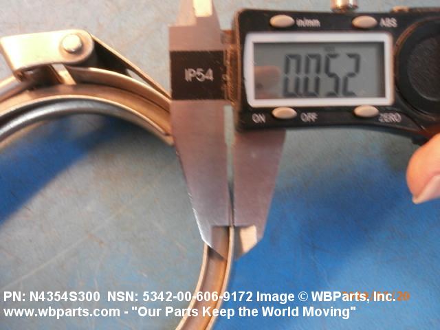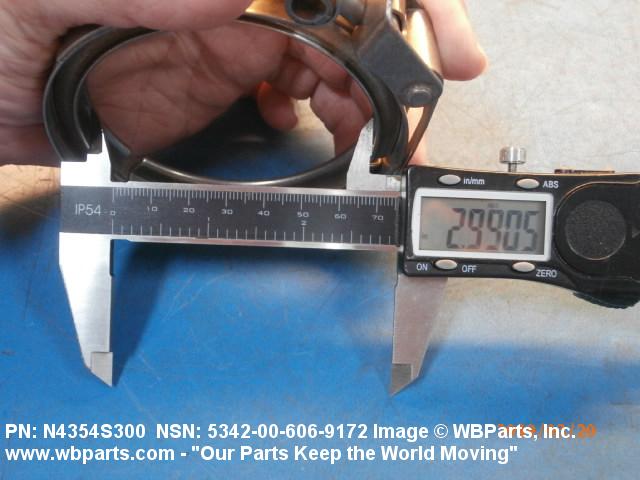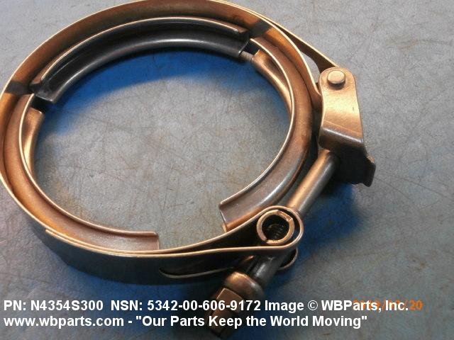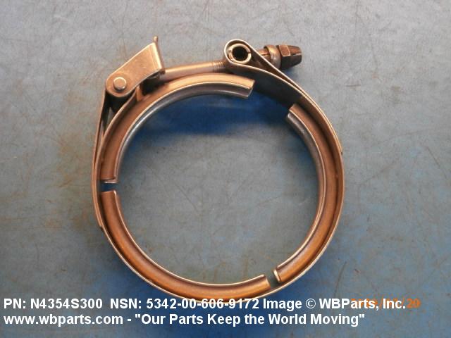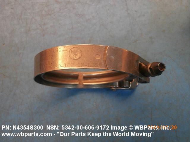 5342-00-606-9172 A metal loop having either a V or U cross section or channelled segment(s). It may be attached to a flat band. It is designed to create a fluid tight joint and/or connect pipe, tubing, tank cover(s), duct(s) and the like, by mating with flanged or beaded ferrule(s), flared, or beaded ends. It may or may not have a sealing inner liner. A latch or latches of the quick coupling type, nut or bolt type, or threaded trunnion type is (are) used to lock and adjust the band. Excludes COUPLING, CLAMP, PIPE and RING, LOCKING, METAL DRUM COVER.