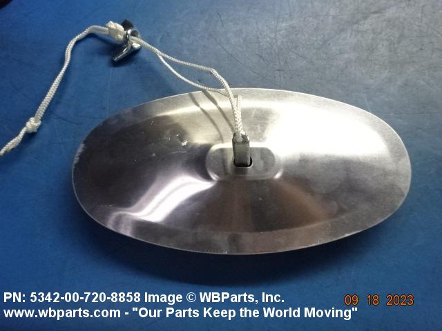 5342-00-720-8858 A device consisting of gasketed metal or plastic plates, secured by a nut and designed to seal bullet holes or accidental tears in the rubberized fabric of such items as an inflatable life raft and inflatable life preserver.