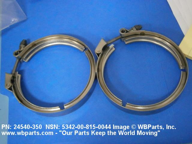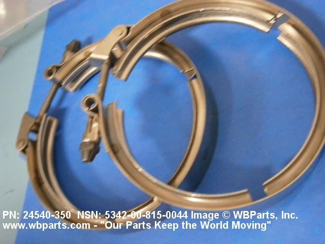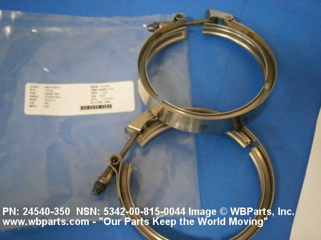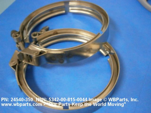 5342-00-815-0044 A metal loop having either a V or U cross section or channelled segment(s). It may be attached to a flat band. It is designed to create a fluid tight joint and/or connect pipe, tubing, tank cover(s), duct(s) and the like, by mating with flanged or beaded ferrule(s), flared, or beaded ends. It may or may not have a sealing inner liner. A latch or latches of the quick coupling type, nut or bolt type, or threaded trunnion type is (are) used to lock and adjust the band. Excludes COUPLING, CLAMP, PIPE and RING, LOCKING, METAL DRUM COVER.