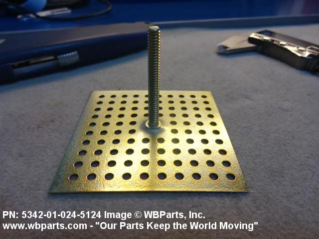 | GENERAL CHARACTERISTICS ITEM DESCRIPTION | STEEL PERFORATED BASE PLATE 2.750 IN. SQ,0.027 IN. THK,STEEL STUD,1.750 IN. LG,0.190-24 THD,SWEDGED TO CENTER OF BASE PLATE |