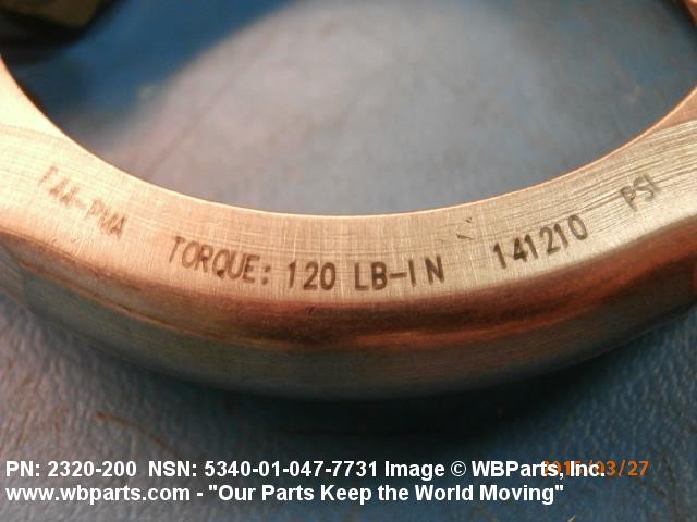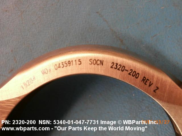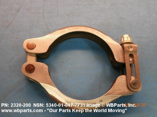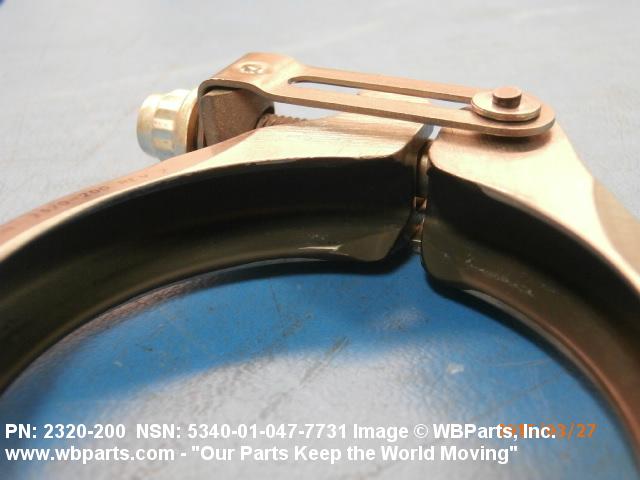 5342-01-047-7731 A metal loop having either a V or U cross section or channelled segment(s). It may be attached to a flat band. It is designed to create a fluid tight joint and/or connect pipe, tubing, tank cover(s), duct(s) and the like, by mating with flanged or beaded ferrule(s), flared, or beaded ends. It may or may not have a sealing inner liner. A latch or latches of the quick coupling type, nut or bolt type, or threaded trunnion type is (are) used to lock and adjust the band. Excludes COUPLING, CLAMP, PIPE and RING, LOCKING, METAL DRUM COVER.