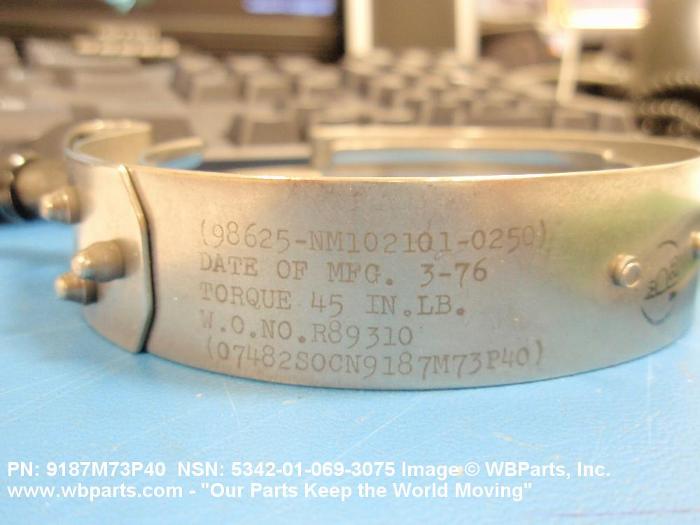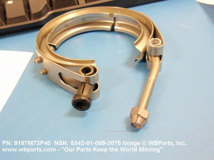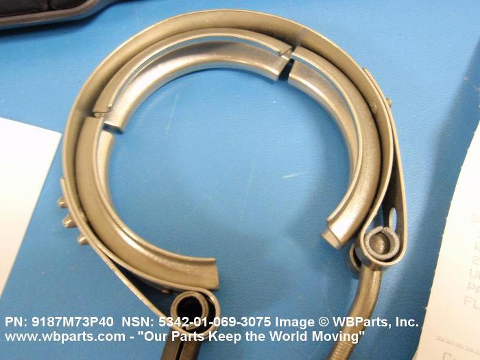 5342-01-069-3075 A metal loop having either a V or U cross section or channelled segment(s). It may be attached to a flat band. It is designed to create a fluid tight joint and/or connect pipe, tubing, tank cover(s), duct(s) and the like, by mating with flanged or beaded ferrule(s), flared, or beaded ends. It may or may not have a sealing inner liner. A latch or latches of the quick coupling type, nut or bolt type, or threaded trunnion type is (are) used to lock and adjust the band. Excludes COUPLING, CLAMP, PIPE and RING, LOCKING, METAL DRUM COVER.