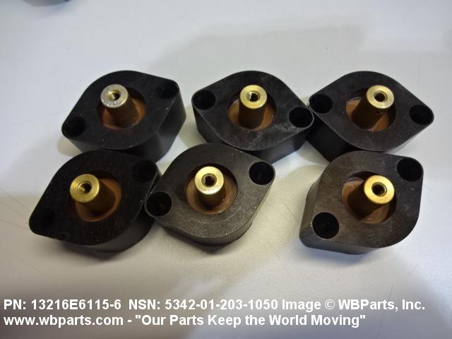5342-01-203-1050 An item made of material having elastic properties. It may have rigid mounting facilities such as a flange(s), sleeve(s), stud(s) or the like. It is designed to isolate or dampen shock and/or vibration of a continuous or intermittent origin and serve as a support for a weapon system component to be isolated. Excludes MOUNT, RESILIENT, UTILITY; SPRING (as modified); BUMPER, NONMETALLIC; BUMPER, RUBBER; BUSHING, NONMETALLIC; hydraulic and pneumatic shock absorbers, dash-pots, grommets, and shock pads.