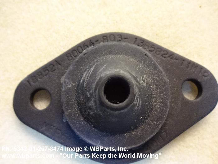 5342-01-267-8474 An item made of material having elastic properties. It may have rigid mounting facilities such as a flange(s), sleeve(s), stud(s) or the like. It is designed to isolate or dampen shock and/or vibration of a continuous or intermittent origin and serve as a support for a weapon system component to be isolated. Excludes MOUNT, RESILIENT, UTILITY; SPRING (as modified); BUMPER, NONMETALLIC; BUMPER, RUBBER; BUSHING, NONMETALLIC; hydraulic and pneumatic shock absorbers, dash-pots, grommets, and shock pads.