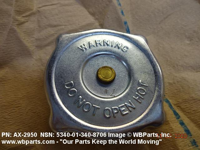 5342-01-340-8706 A part basically circular in shape, designed to cover or seal the filler-neck or inlet opening of a fuel tank, radiator, oil reservoir, liquid storage tank or the like. It may be either permanently attached to the object for which it is designed or provided with a means of removal and replacement. Excludes CAP, VENT, FUEL STORAGE TANK; and COVER (1), (as modified).20525900034Miscellaneous Vehicular Components29300045Engine Cooling System Components, Nonaircraft29350055Engine System Cooling Components, Aircraft Prime Moving53400020Hardware, Commercial53420023Hardware, Weapon System