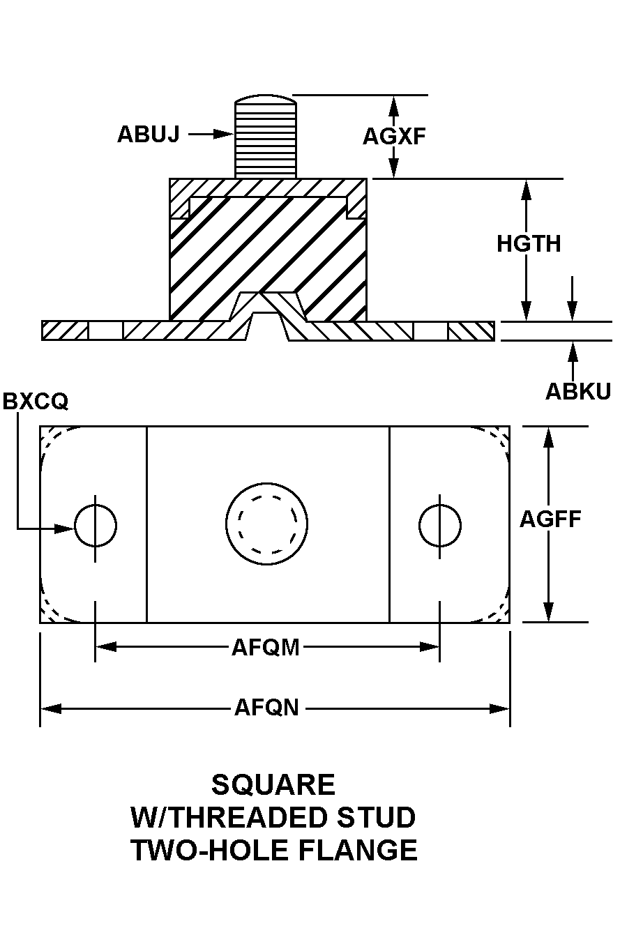 | STYLE DESIGNATOR | 84 SQUARE W/THREADED STUD TWO-HOLE FLANGE |