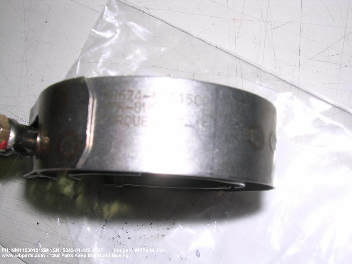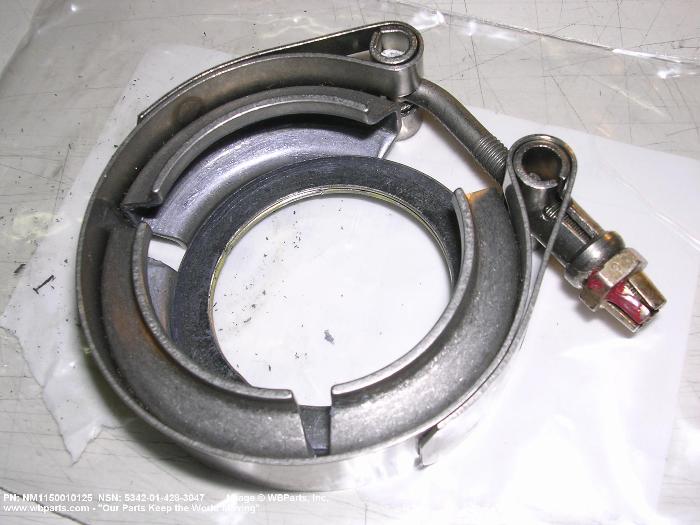5342-01-428-3047 A metal loop having either a V or U cross section or channelled segment(s). It may be attached to a flat band. It is designed to create a fluid tight joint and/or connect pipe, tubing, tank cover(s), duct(s) and the like, by mating with flanged or beaded ferrule(s), flared, or beaded ends. It may or may not have a sealing inner liner. A latch or latches of the quick coupling type, nut or bolt type, or threaded trunnion type is (are) used to lock and adjust the band. Excludes COUPLING, CLAMP, PIPE and RING, LOCKING, METAL DRUM COVER.