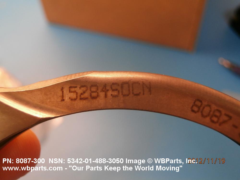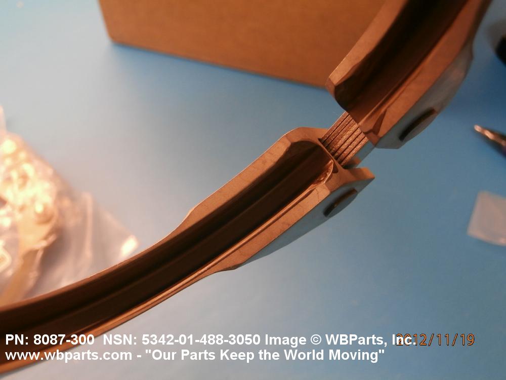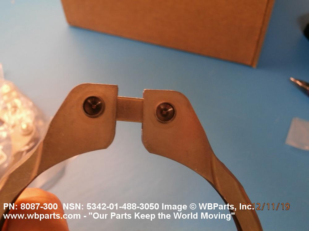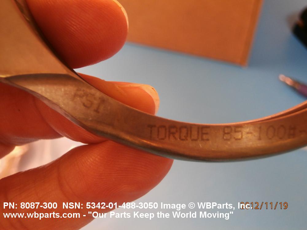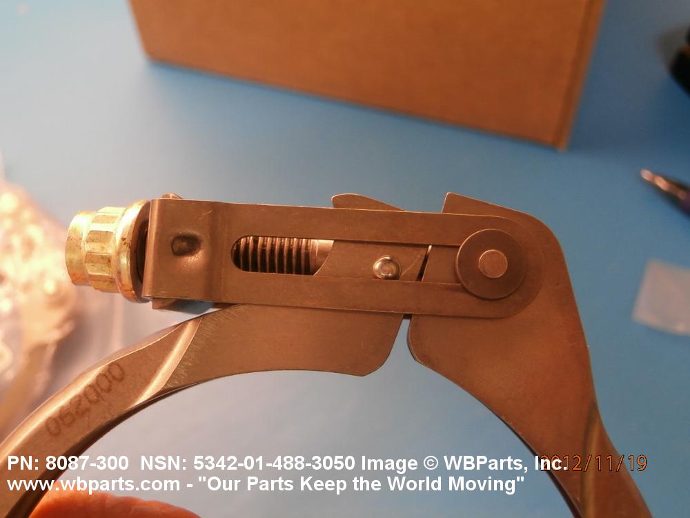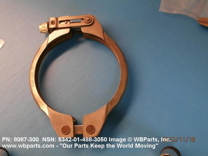 5342-01-488-3050 A metal loop having either a V or U cross section or channelled segment(s). It may be attached to a flat band. It is designed to create a fluid tight joint and/or connect pipe, tubing, tank cover(s), duct(s) and the like, by mating with flanged or beaded ferrule(s), flared, or beaded ends. It may or may not have a sealing inner liner. A latch or latches of the quick coupling type, nut or bolt type, or threaded trunnion type is (are) used to lock and adjust the band. Excludes COUPLING, CLAMP, PIPE and RING, LOCKING, METAL DRUM COVER.