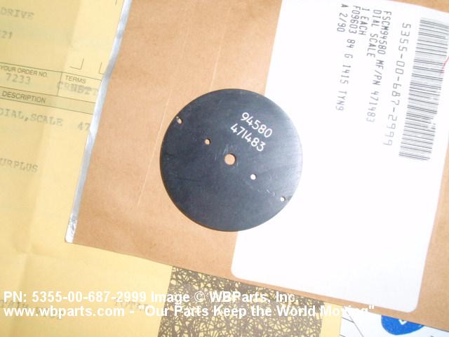 5355-00-687-2999 A dial designed to be read in conjunction with a vernier indicator, pointer(s) or like instruments, which device is not an integral part of the item. The item does not have facilities for connection to a tuning or selection mechanism to position the mechanism. However, it may be designed to be mounted on a knob used to position the mechanism. Excludes SCALEPLATE, ELECTRICAL METER. See also DIAL, CONTROL.