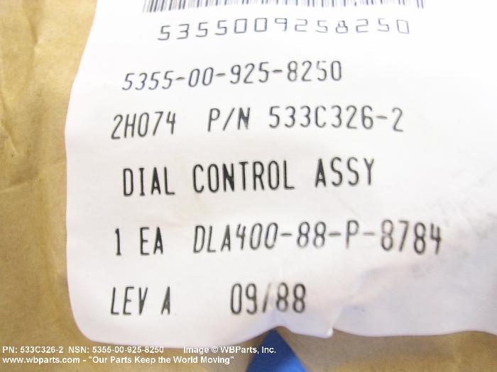 Part Alternates: 533C3262, 533C326-2, 5355-00-925-8250, 00-925-8250, 5355009258250, 009258250