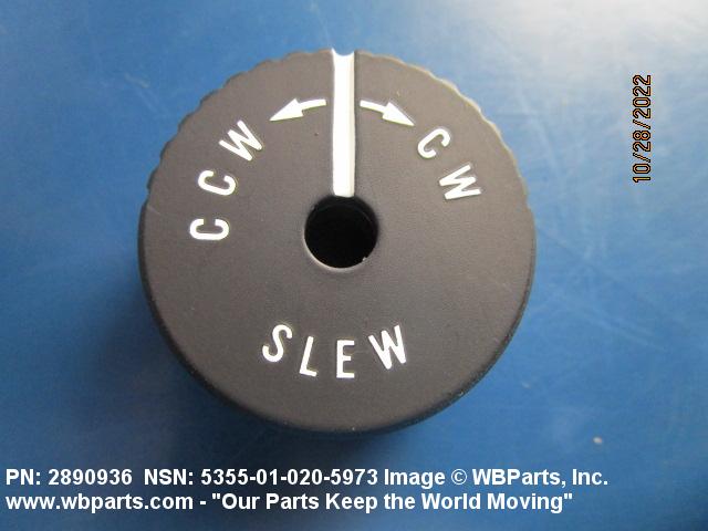 5355-01-020-5973 An item designed to transmit manual, rotary or linear motion to other devices. May include detachable or nondetachable stud (shaft), pointer, or skirt. It may have reference markings in the form of dots, arrows, hairlines, and/or symbols which may be used in conjunction with a calibrated panel, vernier indicator, and the like to indicate the position or motion of items. For items having spokes or simulated spokes radiating from near the center to near the outside rim of the item and relatively thin round disk-shaped items 3 inches (76.2 mm) in diameter or over, see HANDWHEEL. For items calibrated in units or series of divisions to denote relative positioning of devices see DIAL, CONTROL. Excludes DOORKNOB; and HANDLE (as modified).20210050018Guns, through 30mm53550018Knobs and Pointers