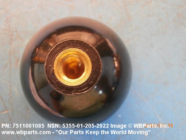 5355-01-205-2922 An item designed to transmit manual, rotary or linear motion to other devices. May include detachable or nondetachable stud (shaft), pointer, or skirt. It may have reference markings in the form of dots, arrows, hairlines, and/or symbols which may be used in conjunction with a calibrated panel, vernier indicator, and the like to indicate the position or motion of items. For items having spokes or simulated spokes radiating from near the center to near the outside rim of the item and relatively thin round disk-shaped items 3 inches (76.2 mm) in diameter or over, see HANDWHEEL. For items calibrated in units or series of divisions to denote relative positioning of devices see DIAL, CONTROL. Excludes DOORKNOB; and HANDLE (as modified).20210050018Guns, through 30mm53550018Knobs and Pointers