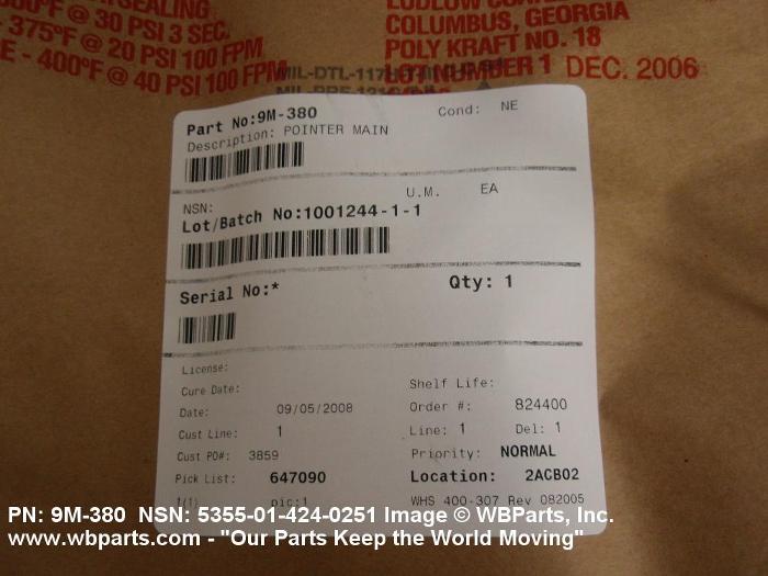 Part Alternates: 9M380, 9M-380, 5355-01-424-0251, 01-424-0251, 5355014240251, 014240251
