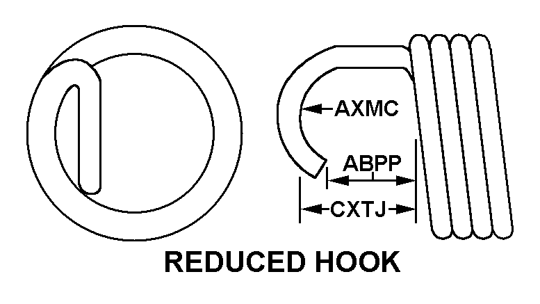 | COIL TO HOOK INSIDE LENGTH | 0.160 INCHES NOMINAL FIRST END 0.350 INCHES NOMINAL SECOND END |