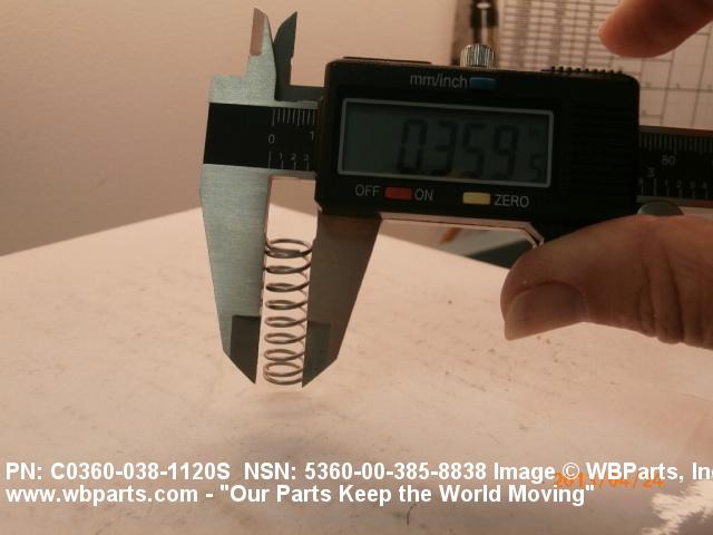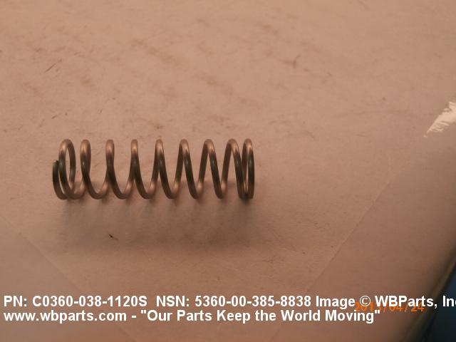 5360-00-385-8838 An open coiled spring, wound in various forms and from different shapes and types of materials and finished at the ends, designed to provide resistance to compression forces. Excludes springs designed for thermal actuation (springs in which the torsion forces are designed to be counteracted by changes in temperature) and SPRING, REINFORCING, HOSE.20210050018Guns, through 30mm53600034Coil, Flat, Leaf, and Wire Springs