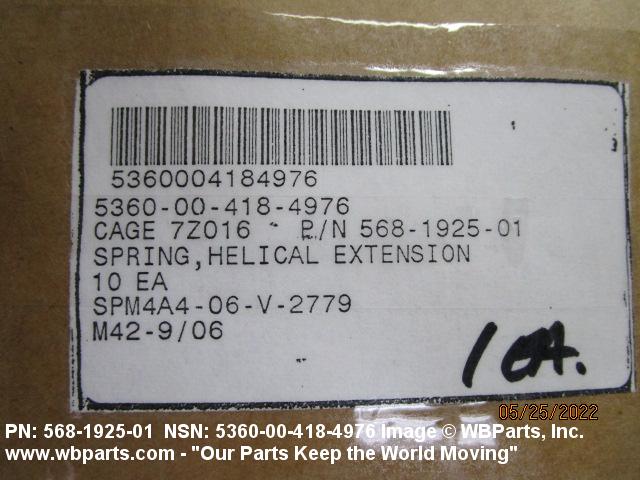 NSN 5360-00-418-4976 568-1925-01, 00-418-4976, 568192501