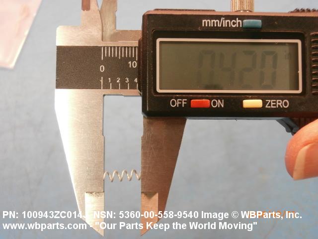 Part Alternates: 10094302200301410, 100943-022-003-014-10, 100943ZC014J, 100943-ZC014J, 5360-00-558-9540, 00-558-9540, 5360005589540, 005589540