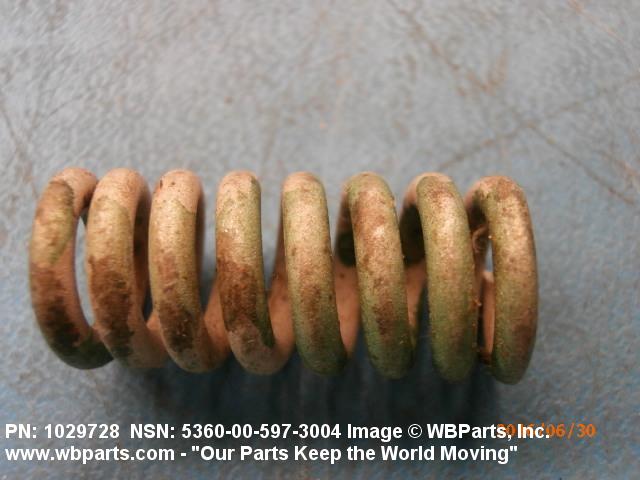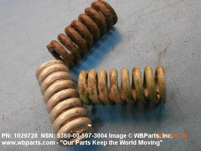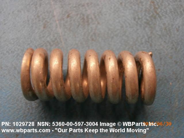 5360-00-597-3004 An open coiled spring, wound in various forms and from different shapes and types of materials and finished at the ends, designed to provide resistance to compression forces. Excludes springs designed for thermal actuation (springs in which the torsion forces are designed to be counteracted by changes in temperature) and SPRING, REINFORCING, HOSE.20210050018Guns, through 30mm53600034Coil, Flat, Leaf, and Wire Springs