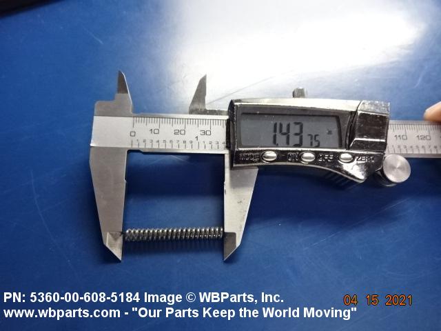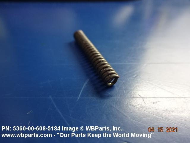 5360-00-608-5184 An open coiled spring, wound in various forms and from different shapes and types of materials and finished at the ends, designed to provide resistance to compression forces. Excludes springs designed for thermal actuation (springs in which the torsion forces are designed to be counteracted by changes in temperature) and SPRING, REINFORCING, HOSE.20210050018Guns, through 30mm53600034Coil, Flat, Leaf, and Wire Springs