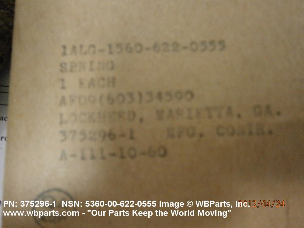 NSN 5360-00-622-0555 3752961, 375296-1, 00-622-0555